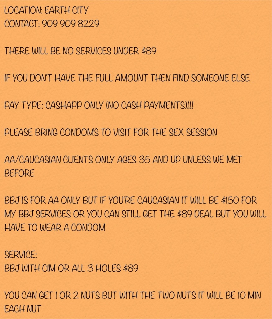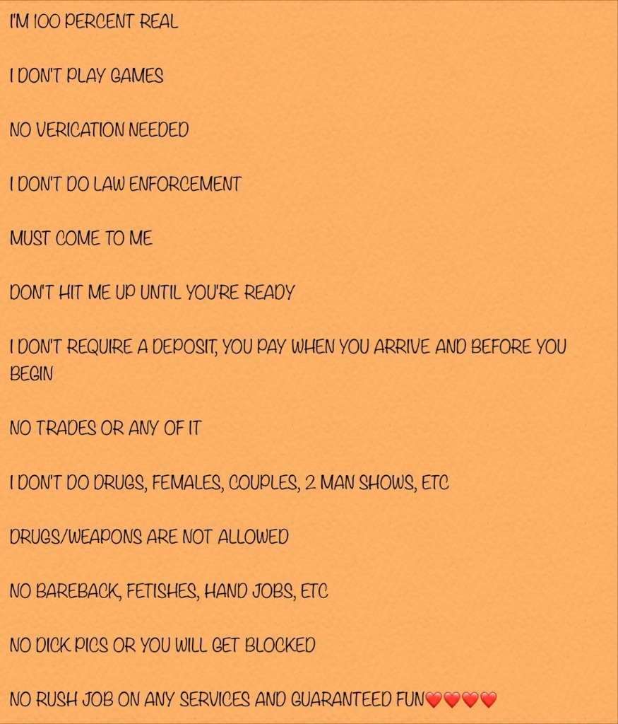 Ad in photo section so please read every detail carefully in my ad before contacting me because if you text me asking what's my rate I will block you